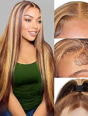 Perucas de cabelo humano loiro com mechas, cabelo virgem brasileiro, fechamento de renda 5x5, perucas sem cola, peruca frontal de renda colorida 13x4, pré-depilada