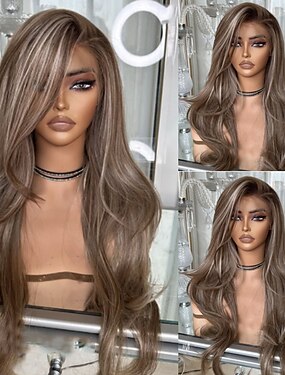Peruca de cabelo humano brasileiro 100% virgem Remy, com fecho 5x5, repartição lateral, ondulada, loiro acinzentado, com baby hair, ombré, lace front 13x4, linha capilar natural para mulheres.