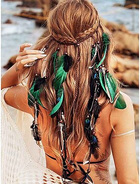Carnaval 2026 Acessórios de Samba do Carnaval do Rio - Tiara de Extensão de Cabelo com Plumas Boêmia - Acessório de Cabelo Trançado Ajustável com Contas - Fantasia de Festival Brasil