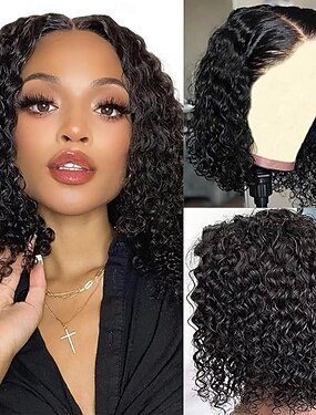 Cabelo Humano 13x4 Lace Front Peruca Parte livre Cabelo Brasileiro Kinky Curly Onda de Água Preta Natural Peruca 130% 150% 180% Densidade do Cabelo com o cabelo do bebê 100% Virgem Sem cola
