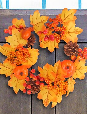 Guirlanda de outono para porta da frente, ação de graças, colheita de outono, decoração interna e externa, guirlanda de abóbora de Halloween e folha de bordo, decoração de casa