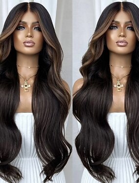 Peruca lace 4x4 Highlight P4/27 com ondas profundas, cabelo humano, densidade 150%, para mulheres negras.