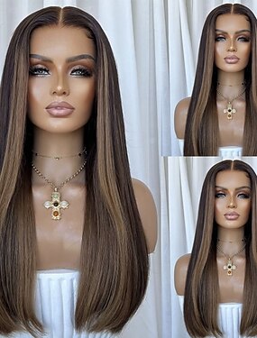 peruca frontal de renda 13x4 em destaque p4/27, cabelo humano liso, densidade 150%, para mulheres