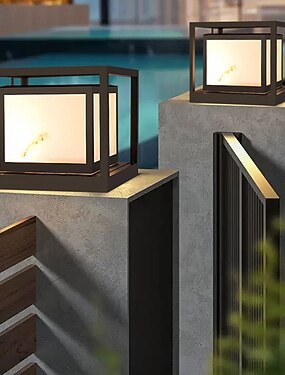 Poste de luz solar para exterior, luminária LED de alumínio com cúpula imitando mármore, à prova d'água IP54.