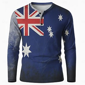 Homens Bandeira Austrália Camisa Henley Manga Longa Moda Estilo bonito Diário Casual Feriado Para Noite Primavera & Outono Todas as Estações Azul Henley Camiseta Henley