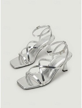 Sandálias femininas prateadas com salto baixo metálico - sapatos elegantes para festas de coquetel
