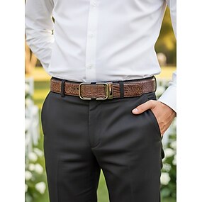 cinto social masculino de couro legítimo com catraca e fivela automática - padrão clássico de crocodilo, estilo elegante, adequado para casamentos, negócios e ocasiões formais