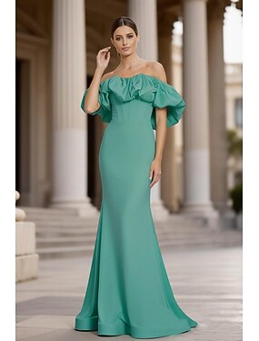 Sereia Longo Vestido formal Vestido de noite Vestidos de noite Elegante Sem Manga Ombro a Ombro Baile de Formatura Formal Tafetá Sem parte Traseira com Fru-Fru