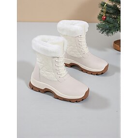 Botas de neve femininas impermeáveis com forro de pele sintética - botas de inverno acolchoadas com cadarço para clima frio e atividades ao ar livre.