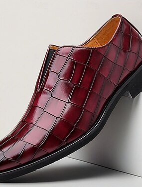 Sapatos sociais masculinos slip-on cor bordô – mocassins formais com estampa de crocodilo e salto baixo clássico para escritórios, casamentos e festas noturnas