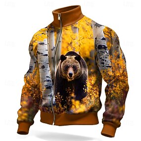Homens Urso Jaqueta Moletom Moda Diário Caça Colarinho Chinês Ao ar livre Streetwear Festa Azul Laranja Laranja 2 Zip Up Primavera Outono Designer S M L XL XXL XXXL