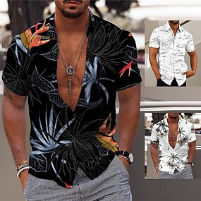 Homens Coqueiro Plantas Tropicais Camisa Social Camisa havaiana Camiseta Aloha Manga Curta Camisa Aberto para a Lateral Moda Havaiana Designer Ao ar livre Rua Casual Preto Branco + preto Branco