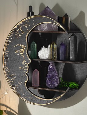 Prateleira decorativa circular em formato de lua, para montagem faça você mesmo, prateleira flutuante, decoração de parede em madeira e suporte de armazenamento, perfeita para casas e despensas.