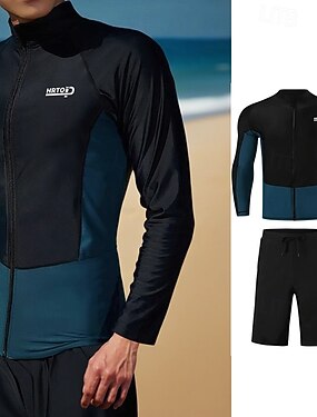 Homens Rash Guard de 2 peças Camisa de surf Calções de banho Bloqueio de cores Proteção Solar UV Secagem Rápida Manga Longa Roupa de Banho Praia Esportes Aquáticos Natação Primavera
