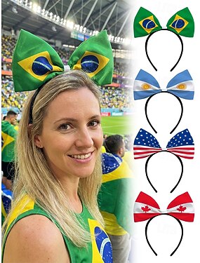 Faixa de cabelo feminina elástica em poliéster estampado com bandeiras de vários países, ideal para torcer por fãs de futebol em dias de jogos, no estádio, para uso casual em esportes e no dia a dia.