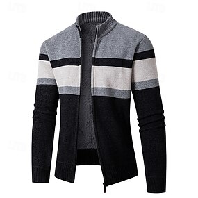 Homens Suéter Jacquard Sueter Cardigan Suéter Cortado Suéter de malha Estriado Crochê Tricotar Padrão Tricotado Jacquard Xadrez / listrado / divisa Colarinho Clerical Moda Clássico Roupa Diária