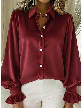 Ano Novo Mulheres Veludo Frufru Côr Sólida à moda Básico Manga Longa Tops regulares Festa de Noite Feriado Fardas Clube Azul Vinho Dourado Verde Azul Claro Outono Inverno