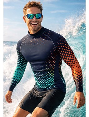 Homens Anti Atrito Camisa de Natação Geométrica Gradiente Pontos UPF50+ Proteção UV Secagem Rápida Manga Longa Roupa de Banho Anti Atrito Surfe Canoagem Praia Verão