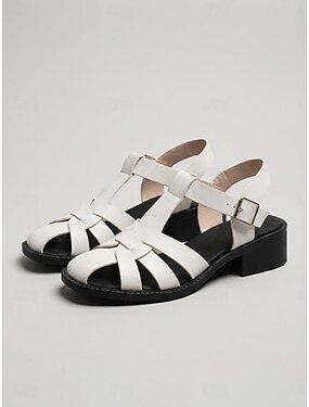 sandálias femininas vazadas com tiras – sandálias de salto estilo vintage para fins de semana e passeios casuais