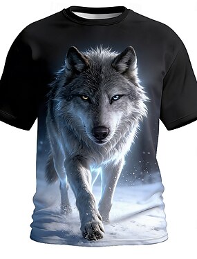 Homens Gráfico Animal Lobo Camiseta T-shirt Manga Curta Camiseta Impressão 3D Gola Redonda Camisa Designer Retro Vintage Casual Esportes Feriado Para Noite cáqui Cinzento Escuro Cinzento Primavera