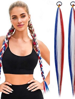 Perucas Vermelha Branca e Azul para Mulheres e Meninas Peruca do Dia da Independência Curta Cacheada e Ondulada Com Franja Fantasia para Festa do Quatro de Julho
