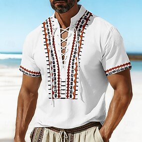 Homens Estampa Geométrica Étnico Camisa Social Camisa Pirata com Cadarço Camisas de Pulôver Manga Curta Vintage retrô Casual / Diário férias na praia Verão Primavera Colarinho Chinês Impressão 3D