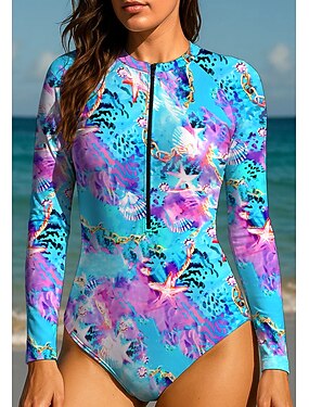Mulheres Segunda-pele para Mergulho Roupa de banho Conjunto de maiô Tropical Zip Up Bojo Removível Zíper Frontal Proteção Solar UV UPF50+ Ultra Leve (UL) Manga Longa Roupa de Banho Anti Atrito Surfe