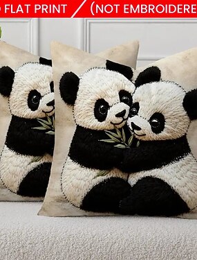 Capa de almofada de linho com estampa plana 2D de panda abraçando, capa de almofada quadrada moderna com fechamento em zíper, capa de almofada decorativa macia para sofá, quarto e sala de estar.