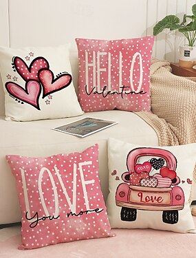 Capa de almofada para o Dia dos Namorados, vermelha e rosa com a palavra "olá". &Almofada decorativa de linho com estampa de carta de amor e desenho de coração para sofá, quarto e mesa de cabeceira.