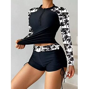 Mulheres Anti Atrito Roupa de banho Maiôs Estampado Boyleg Proteção UV Secagem Rápida Elástico Manga Longa Roupa de Banho roupa de banho Surfe Praia Natação Verão