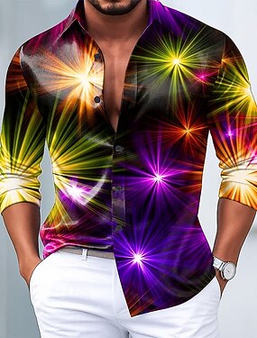 Natal Homens Purpurina Brilhante Luz de Natal Camisa Social camisa de botão Manga Longa Moda Casual Feriado Primavera Outono Aberto para a Lateral Impressão 3D Um bolso frontal Camisa tipo linho