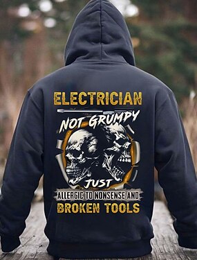 Moletom Masculino com Capuz - Design de Caveira de Eletricista Não Irritado Alérgico a Tretas Humor de Ferramentas Quebradas