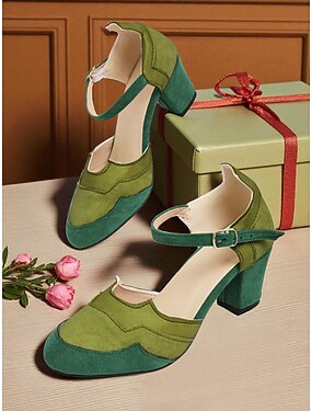 Sapatos Mary Jane femininos de camurça bicolor estilo flapper da década de 1920 – scarpins vintage de salto bloco rosa e marrom para festas estilo Gatsby e eventos com temática retrô
