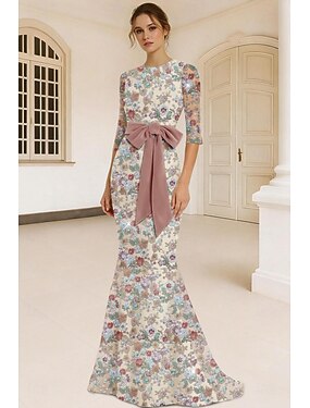 Sereia Longo Bordado com miçangas Vestido formal Vestido para a mãe da noiva Vestidos de baile Vestidos de noite Vestido formal Elegante Brilhante Estilo Celebridade Meia Manga Gola Redonda Festa de