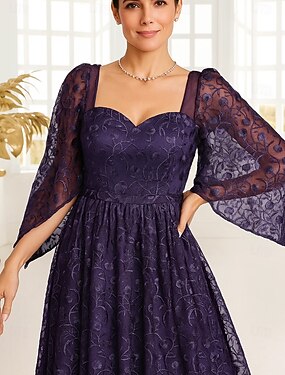 Vestido de Convidada de Casamento Longo A-Line Vestidos Formais Vestido de Noite Vestido da Mãe da Noiva Manga Longa Decote Redondo Elegante Vintage Plus Size com Lantejoulas