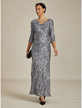 Tubinho Longo Vestidos de baile Vestidos de noite Vestido de Baile Vestido formal Elegante Brilhante Sem Manga Decote V Casamento Formal Paetês com Pregas
