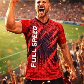 Homens Geométrica Abstrato Carta e Número Verão do Futebol Partida Global Camiseta de Corrida Verão Manga Curta UPF 50 Secagem Rápida Respirável Academia Track Ginástica Vermelho / Preto Roupa de