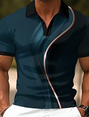 Homens Geométrico Linha Pólo Manga Curta Camisas polo Camisas de colarinho Business casual Escola Ao ar livre Roupa Diária Home Wear Botões Impressão 3D Verão Primavera Outono Azul