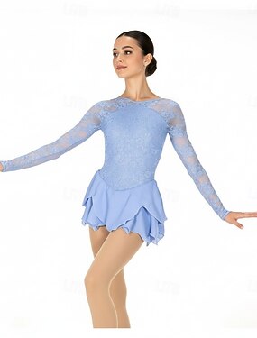Vestidos para Patinação Artística Mulheres Patinação no Gelo Vestidos Azul Céu Patchwork Sem costas Com Stretch Treino Competição Roupa para Patinação Clássico Cristal / Strass Manga Longa Patinação