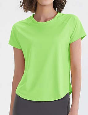 Mulheres Cor Sólida Camiseta de treino Tops de treino Ajuste Largo Elástico Redutor de Suor Respirável Tênis Pickleball Ioga Gola Redonda Blusas Verde Roupas de tênis