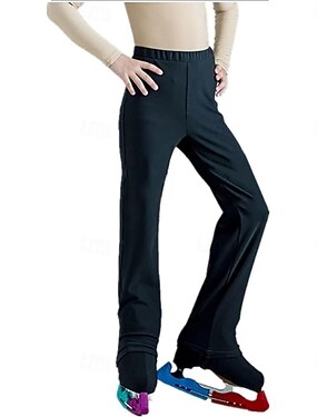 Calças para Patinação no Gelo Homens Patinação no Gelo Calças Preto Patchwork Com Stretch Treino Competição Roupa para Patinação Clássico Cristal / Strass Patinação no Gelo Patinação Artística