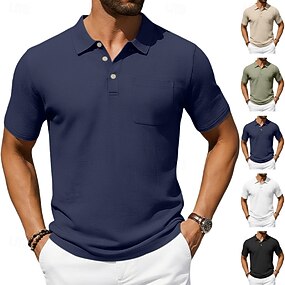 Homens Top de malha canelada Textura Casual Trabalho Lapela gola pólo com nervuras Manga Curta Básico Moderno Bloco de cor Botões Tricotado Primavera Verão Verão Normal Branco Amarelo Vinho Azul