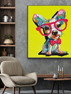 pintura a óleo artesanal lona arte da parede decoração moderna abstrata dos desenhos animados bonito animal filhote de cachorro para decoração de casa rolou pintura sem moldura não esticada