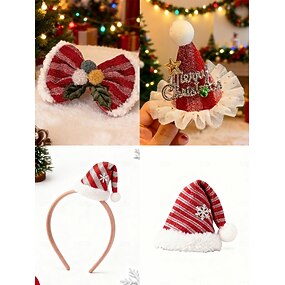 Conjunto de acessórios de cabelo femininos para o Natal, conjunto de 4 peças de faixa de cabeça e presilha de cabelo com chapéu de Papai Noel, laço e detalhes brilhantes para festas de Natal