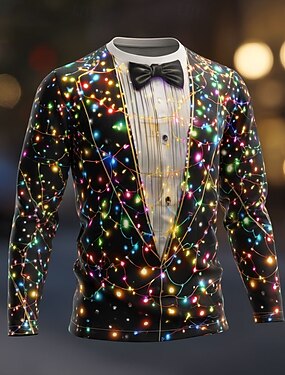 Natal Homens Fantasia de Natal Smoking Camiseta Manga Longa Camiseta Impressão 3D Gola Redonda Camisa Moda Básico 3D Rua Casual Diário Preto 3 Preto Preto 2 Verão Primavera Roupa S M L XL XXL XXXL