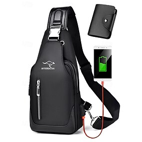 Bolsa tiracolo masculina impermeável em tecido Oxford com porta de carregamento USB, versátil para usar, disponível em várias cores, perfeita para uso casual e ao ar livre.