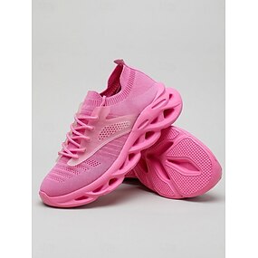 Tênis de corrida feminino rosa em tricô – tênis esportivos leves com plataforma e amortecimento, ideais para caminhadas, viagens e uso diário.