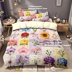 Conjunto de capa de edredom com estampa floral fresca, 3 peças, estilo hotel, inclui 1 capa de edredom e 2 fronhas. Tecido macio e felpudo. Edredom não incluso.