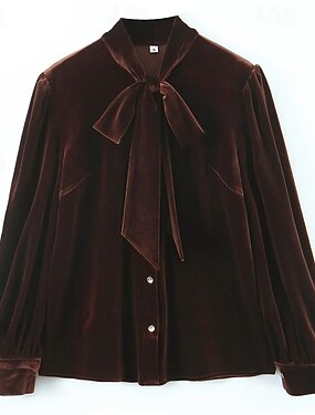 Mulheres Veludo Elegant Elegante Blusa Botões Tecido Elegante Diário à moda Manga Longa Pescoço Tops regulares Diário Feriado Para Noite Preto Roxo Outono Inverno