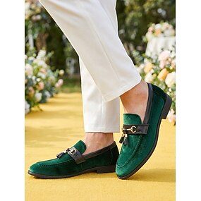 Mocassins masculinos verdes – sapatos para casamentos e ocasiões formais, elegantes, em couro sintético, calçado social confortável.